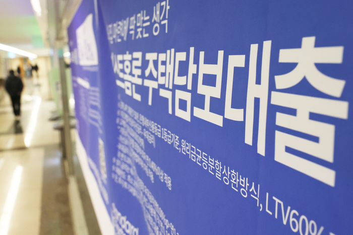 서울의 한 은행 앞에 대출 현수막이 내걸려 있다. [사진 = 연합뉴스]